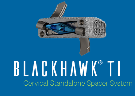 The ChoiceSpine Blackhawk® TI Cervical Spacer System utilizes a comprehensive anchor system with cam-locking mechanism developed for anterior cervical spine fusion. Featuring BioBond® 3D Printed Titanium porous structure, Blackhawk® TI is available in 2 anatomical footprints with significant graft volume and large lateral windows for enhanced visual confirmation. Blackhawk® TI incorporates an integrated cam-style lock mechanism. It provides both visual and tactile feedback during the locking process.